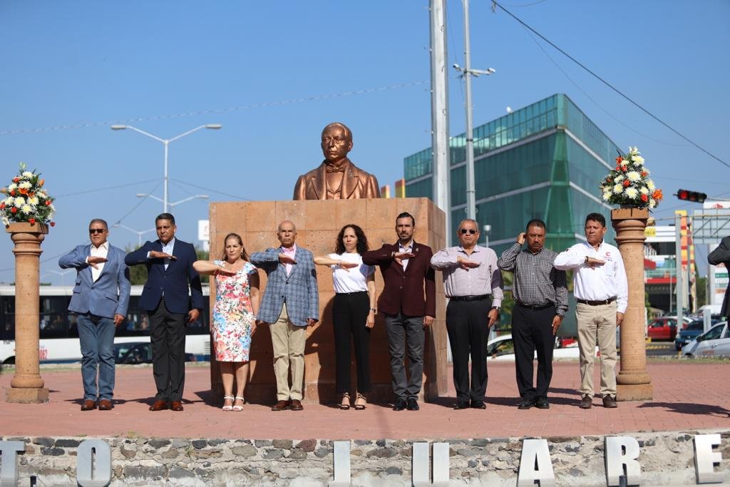 En la glorieta oriente donde se ubica el busto de Juárez, en la intersección de la avenida Constituyentes y el Bulevar Adolfo López Mateos, se dio cita el presidente municipal, Javier Mendoza Márquez, integrantes del Ayuntamiento, secretarios y directores de las dependencias municipales, para participar en este acto cívico.