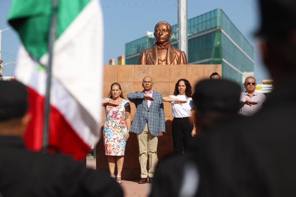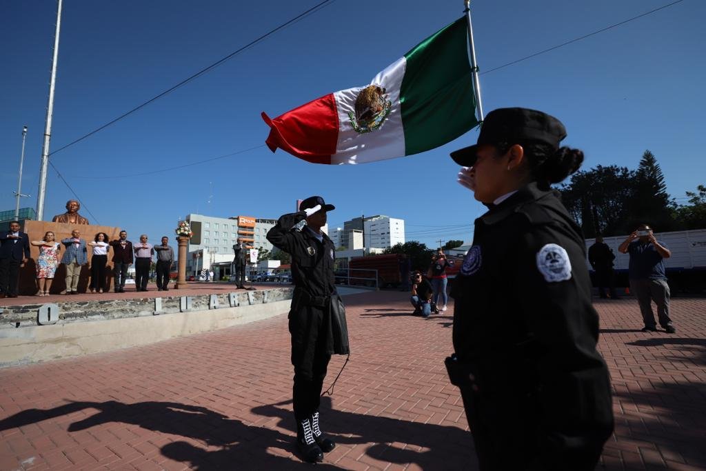 Acompañados de la Banda de Guerra de la Dirección de Policía Municipal y la escolta del Instituto de Formación Policial, se rindieron los honores a la bandera y se cantó el himno nacional, para dar paso a la reseña que ofreció el cronista municipal, Fernando Amate, sobre de algunos aspectos relevantes en la vida de Benito Juárez.