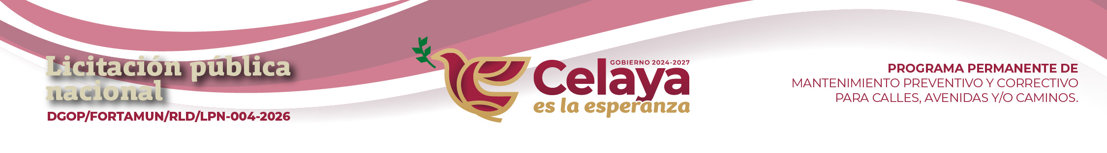Licitación pública nacional DGOP/FORTAMUN/RLD/LPN-004-2026: PROGRAMA PERMANENTE DE MANTENIMIENTO PREVENTIVO Y CORRECTIVO PARA CALLES, AVENIDAS Y/O CAMINOS.
