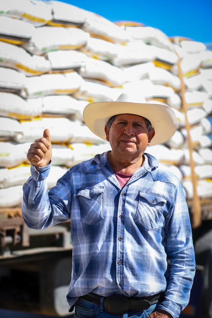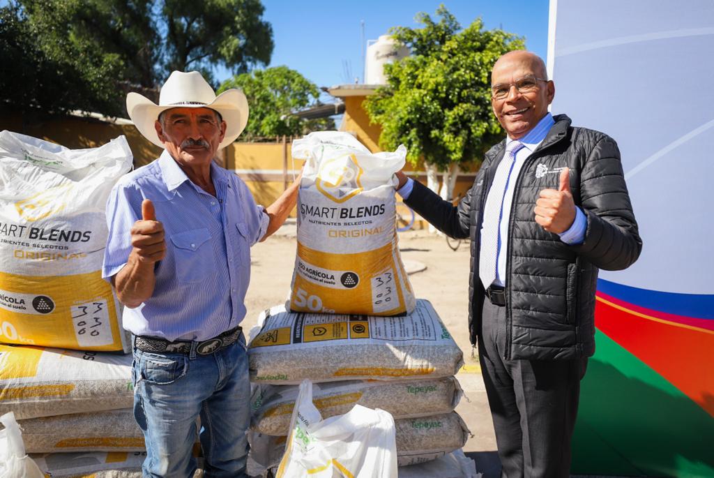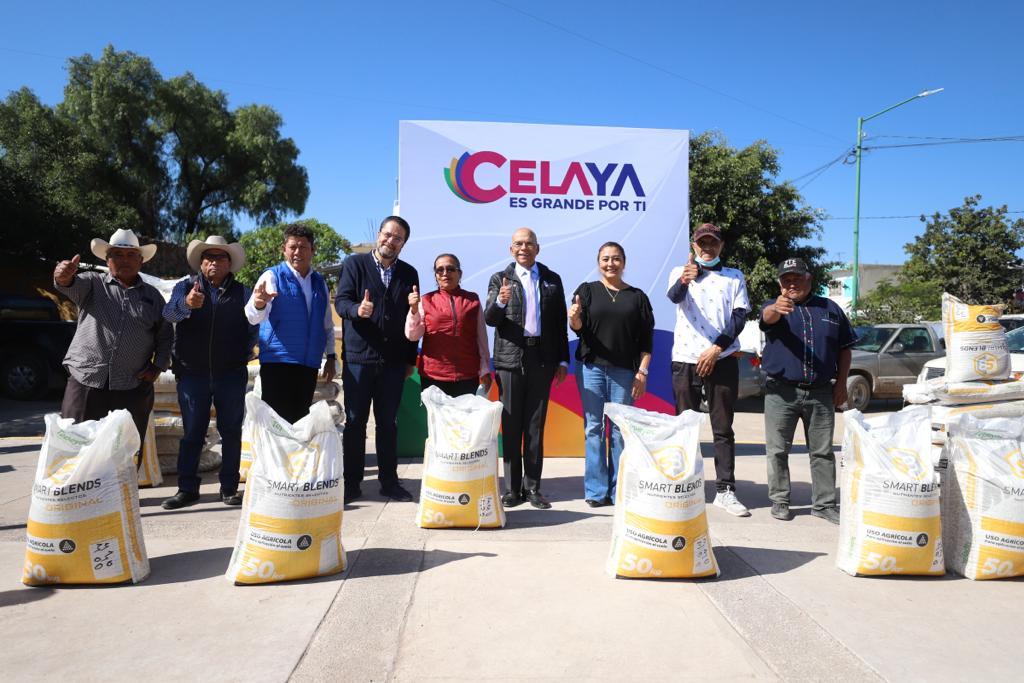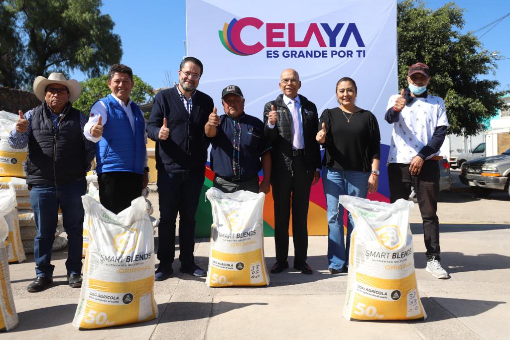 El presidente municipal de Celaya Javier Mendoza Márquez entregó sacos de fertilizante granulado a productores, para su siembra del ciclo otoño – invierno, en San Elías.