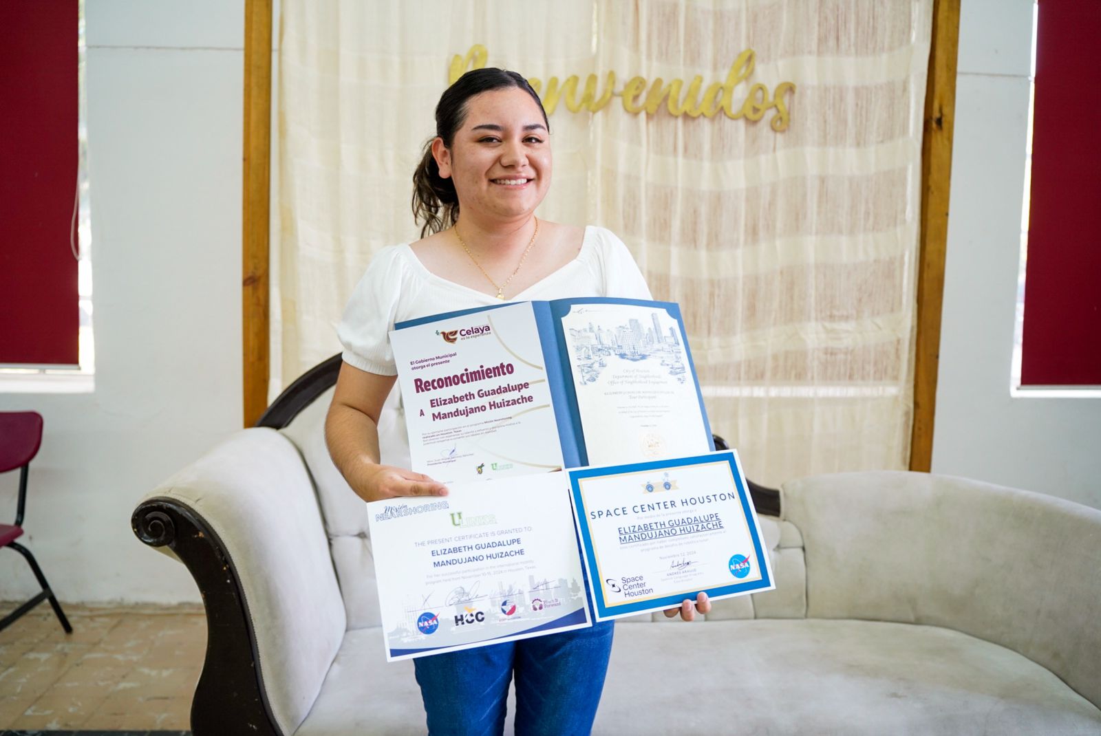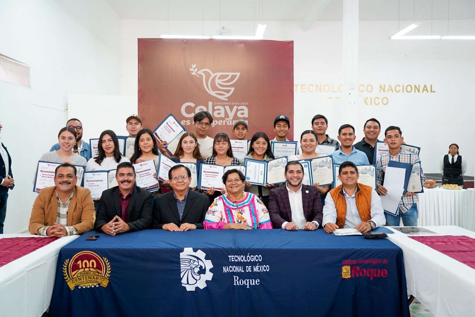 El presidente municipal, Juan Miguel Ramírez Sánchez, acompañado de su esposa y presidenta del Patronato del DIF, Laura Casillas López, acudieron al Tecnológico de Roque para entregar reconocimientos a los alumnos que viajaron a la ciudad de Houston, Texas, con el objetivo de incrementar sus habilidades técnicas y laborales mediante un workshop impartido por expertos del Johnson Space Center de la NASA.