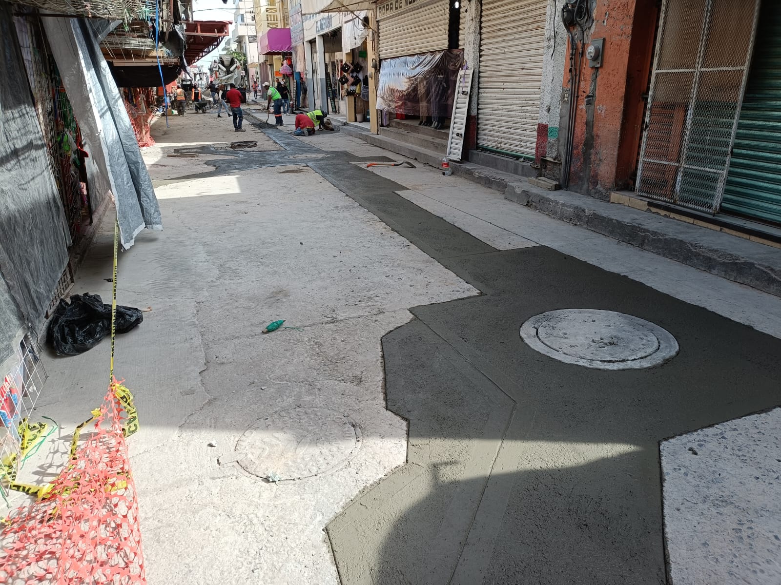 Tan sólo en el tramo considerado peatonal en la zona a un costado del mercado Morelos, estaría concluyendo al inicio de la próxima, es decir casi la mitad del tiempo proyectado ya que se estimó para 4 semanas la ejecución de dicho tramo.