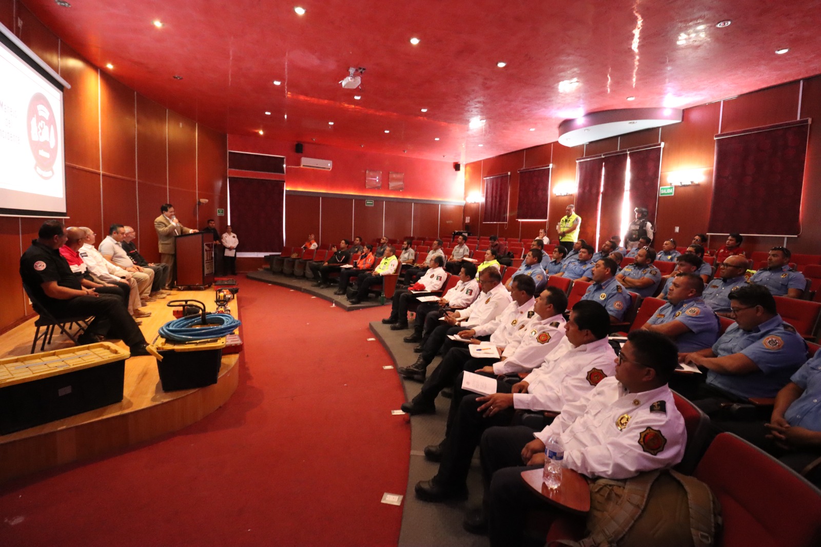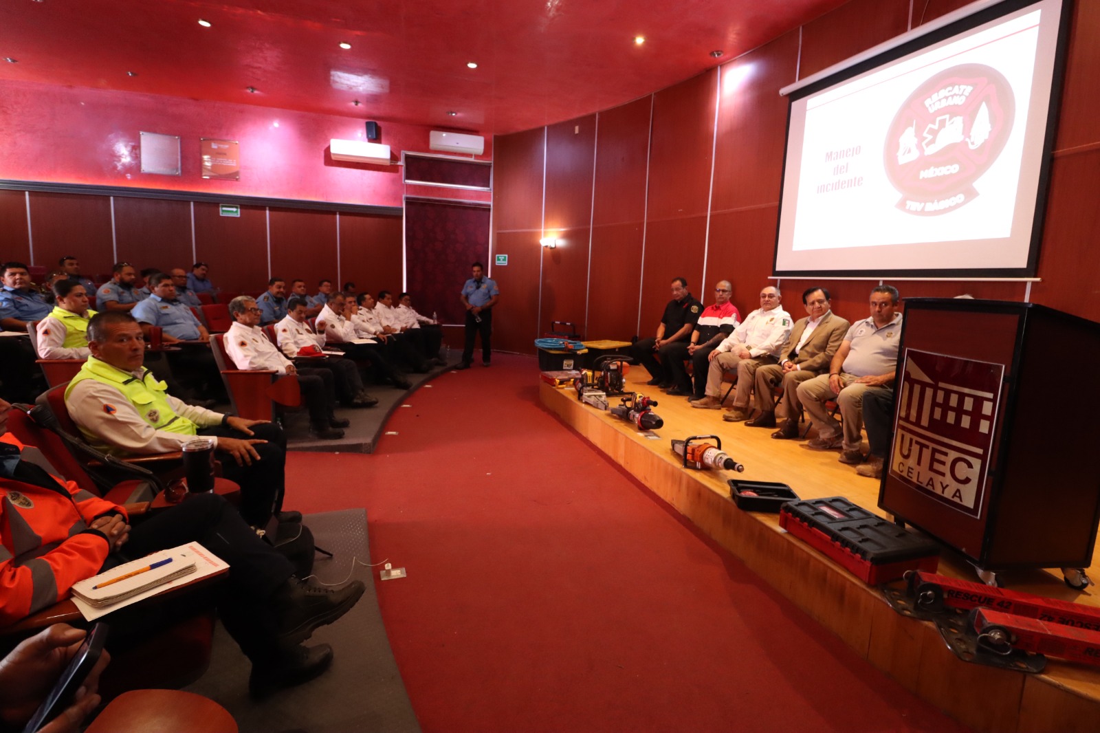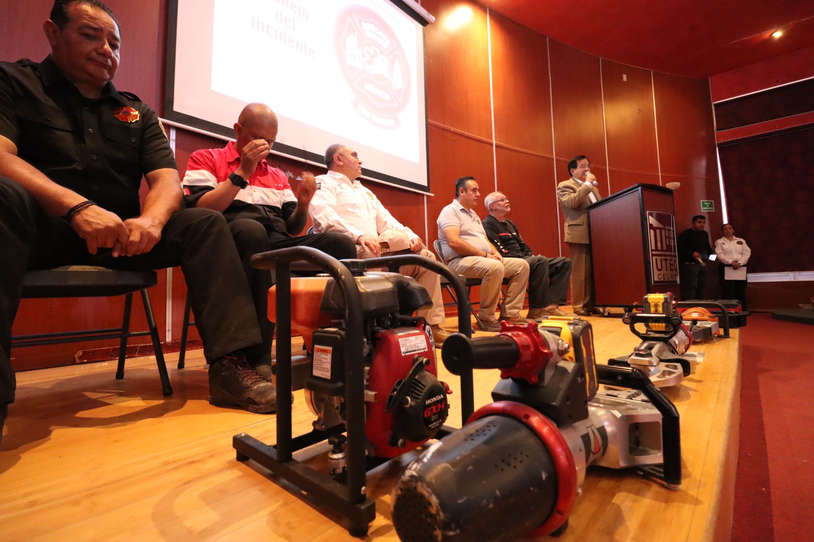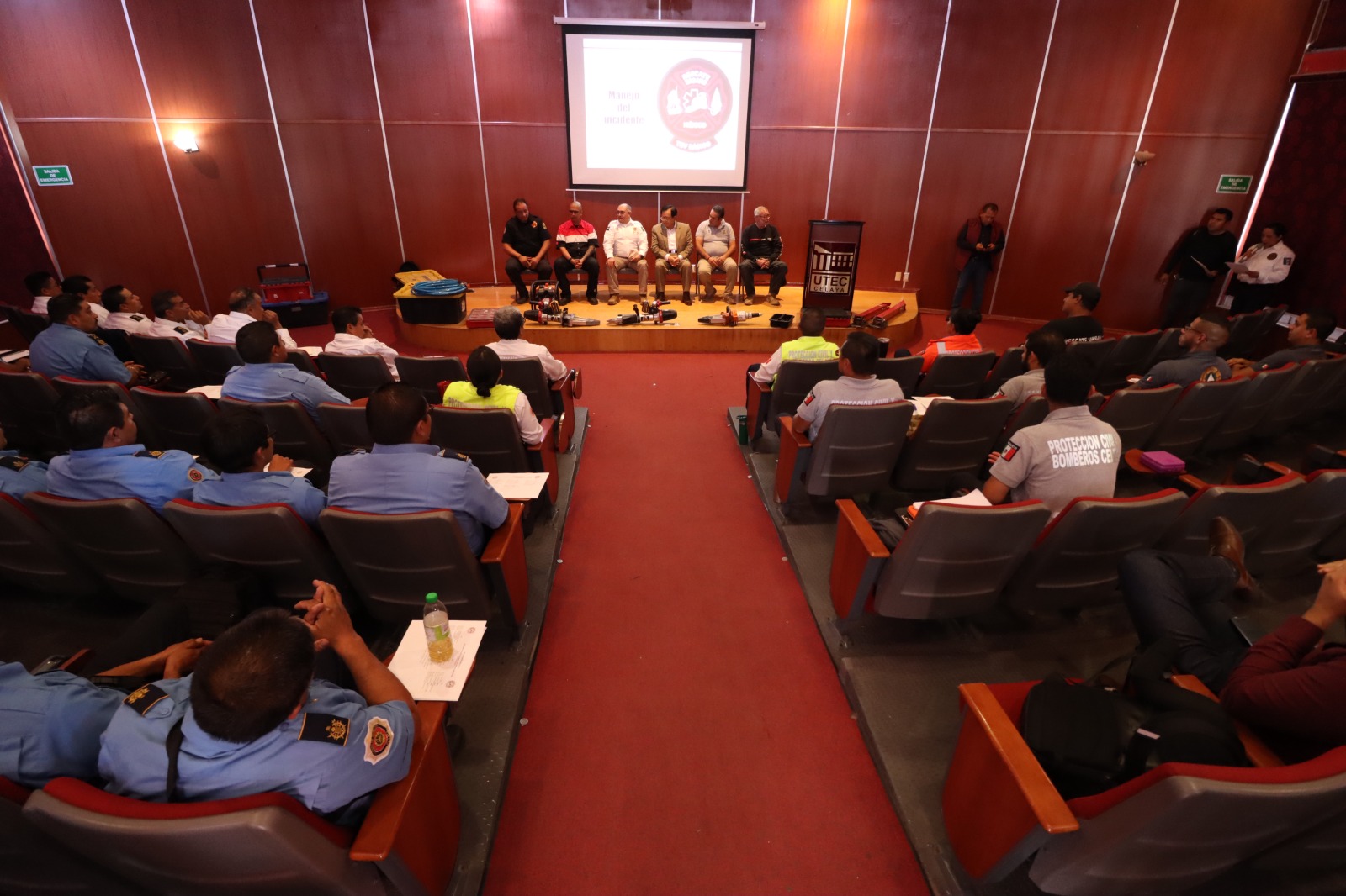 En presencia del Presidente Juan Miguel Ramírez Sánchez, el Secretario de Seguridad; Pablo Muñoz Huitrón y el Director de Protección Civil y Bomberos; Jorge Santoyo Niño, se dio por inaugurada la semana de capacitación en las instalaciones de UTEC como primera sede y posteriormente en las estaciones de bomberos.