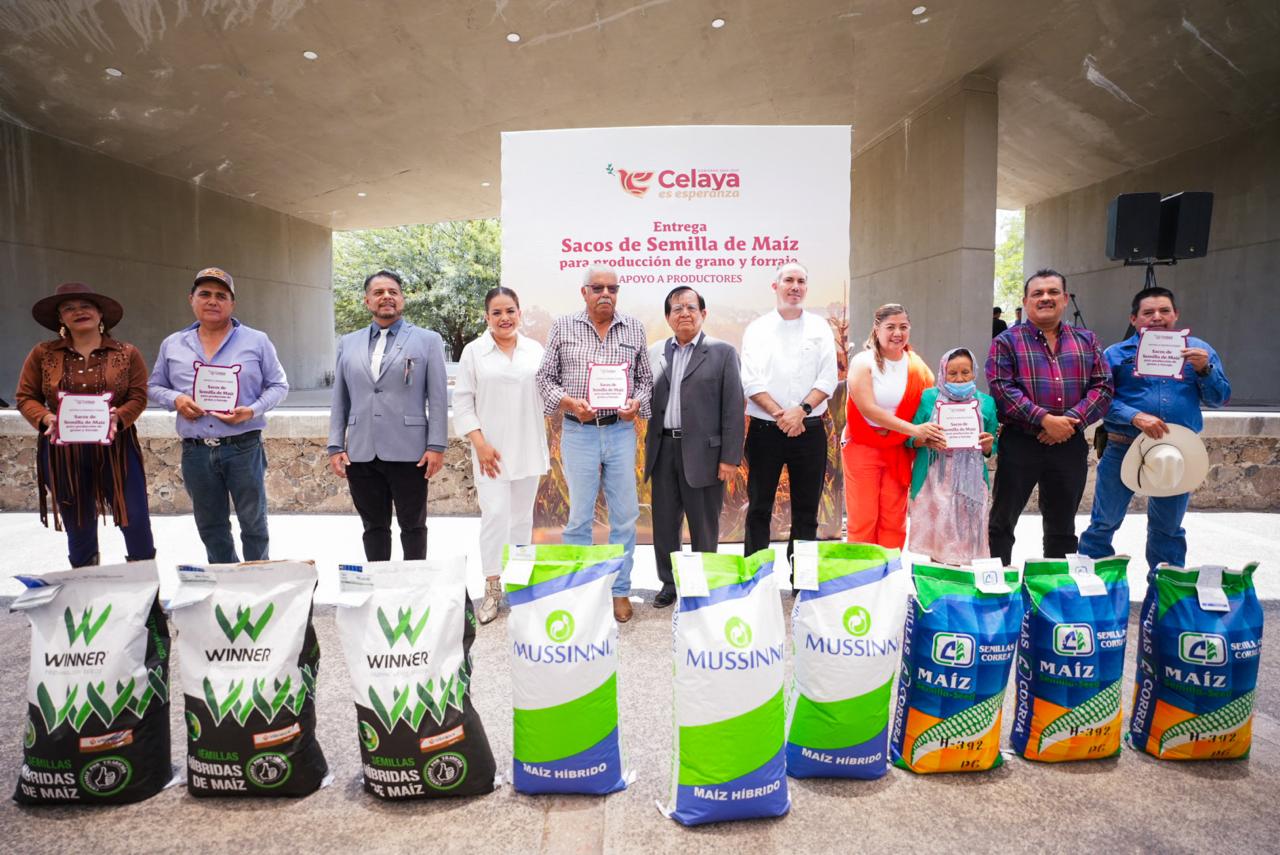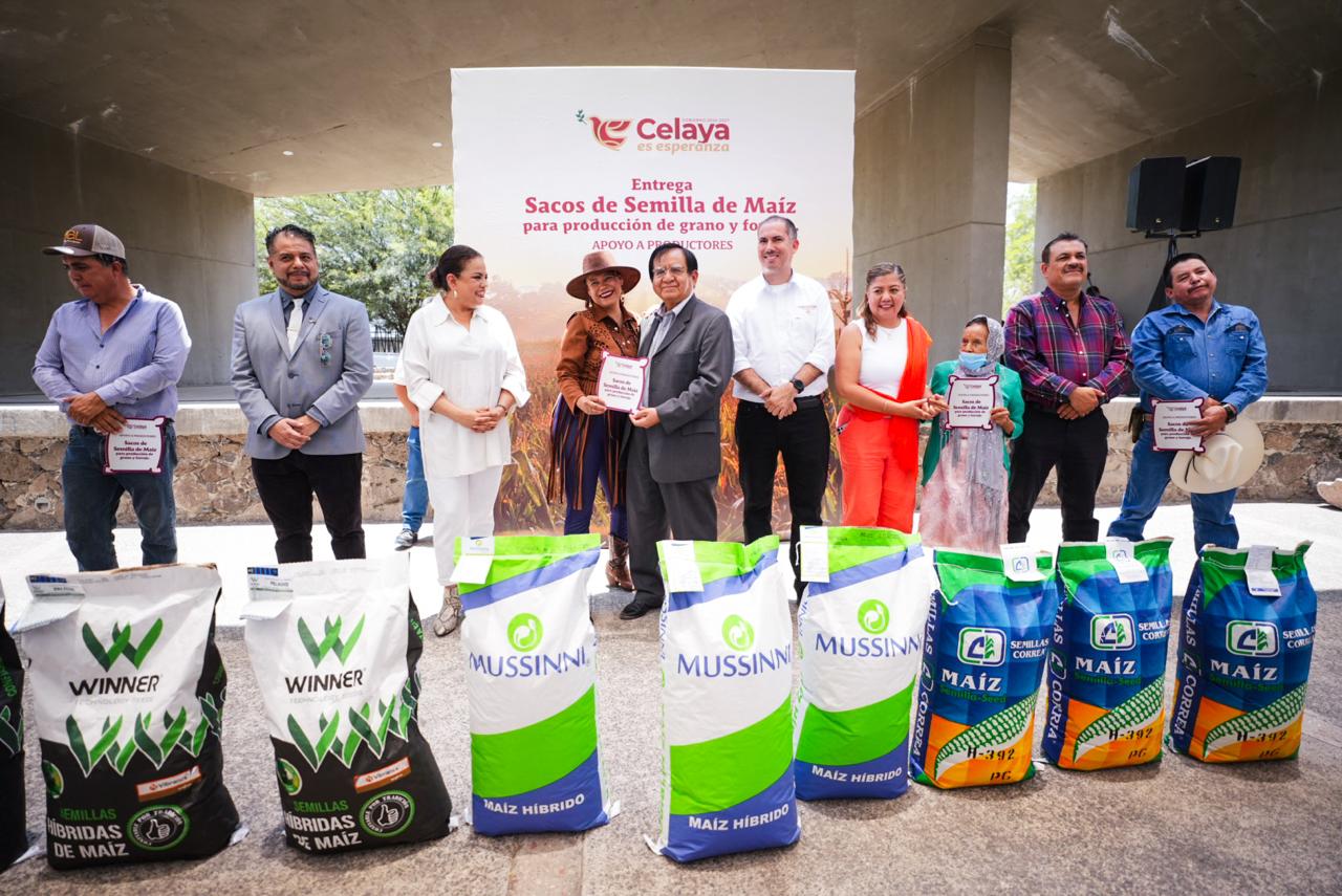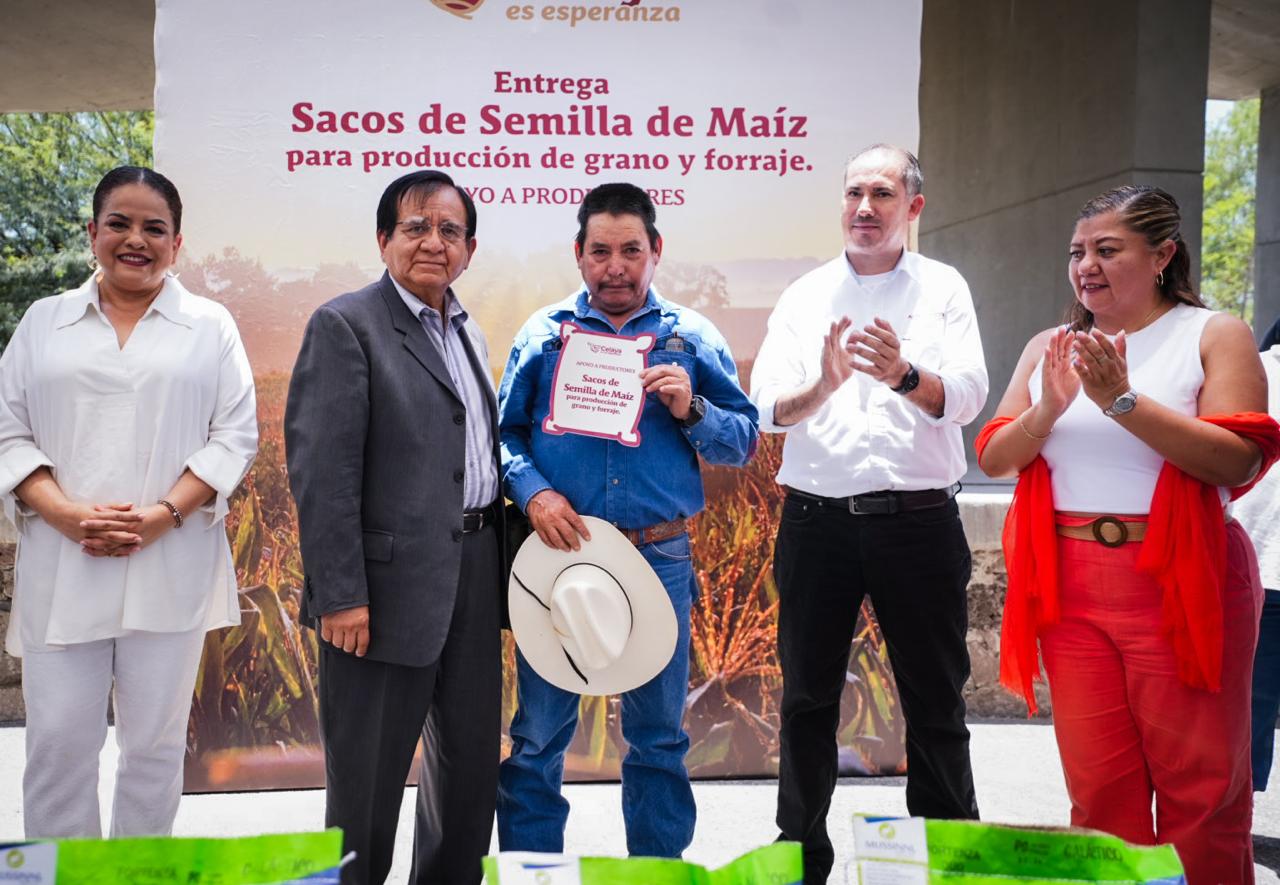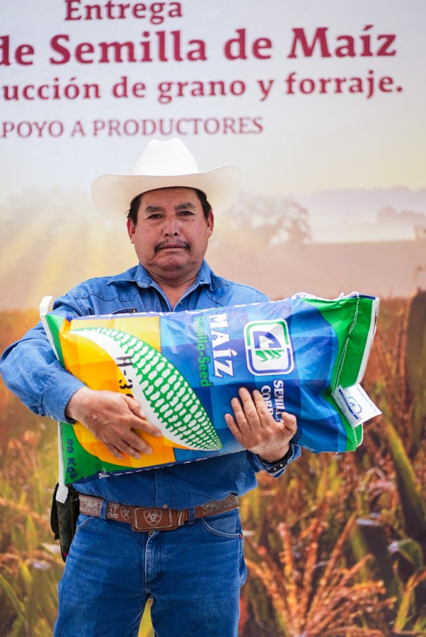 Para fortalecer al sector agrícola y ganadero del municipio, el Gobierno Municipal entregó apoyos en especie a 300 productores de la zona rural, a través de semilla de maíz blanco para producción de tortilla y semilla de maíz híbrido para producción de forraje, como alimento para ganado.
