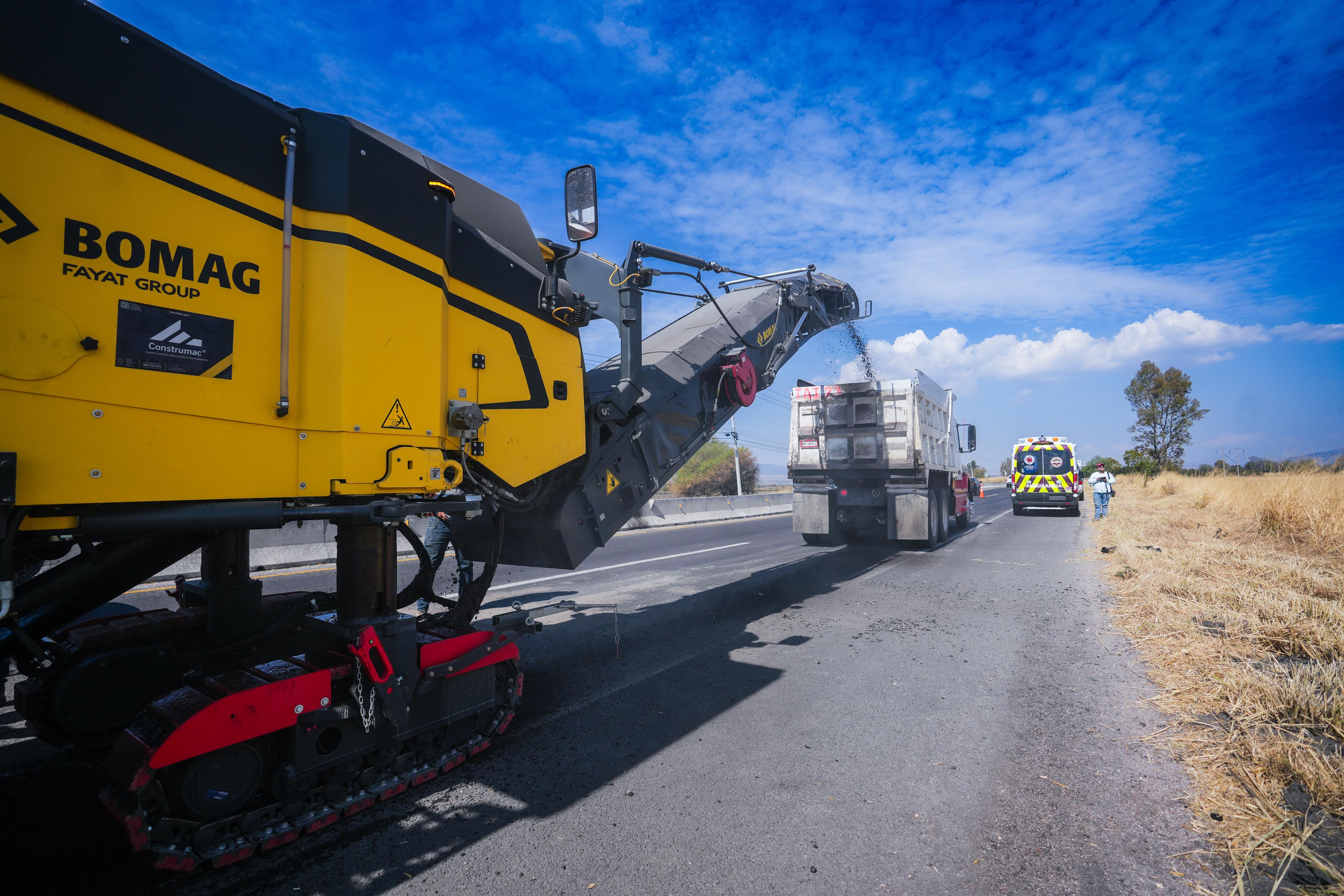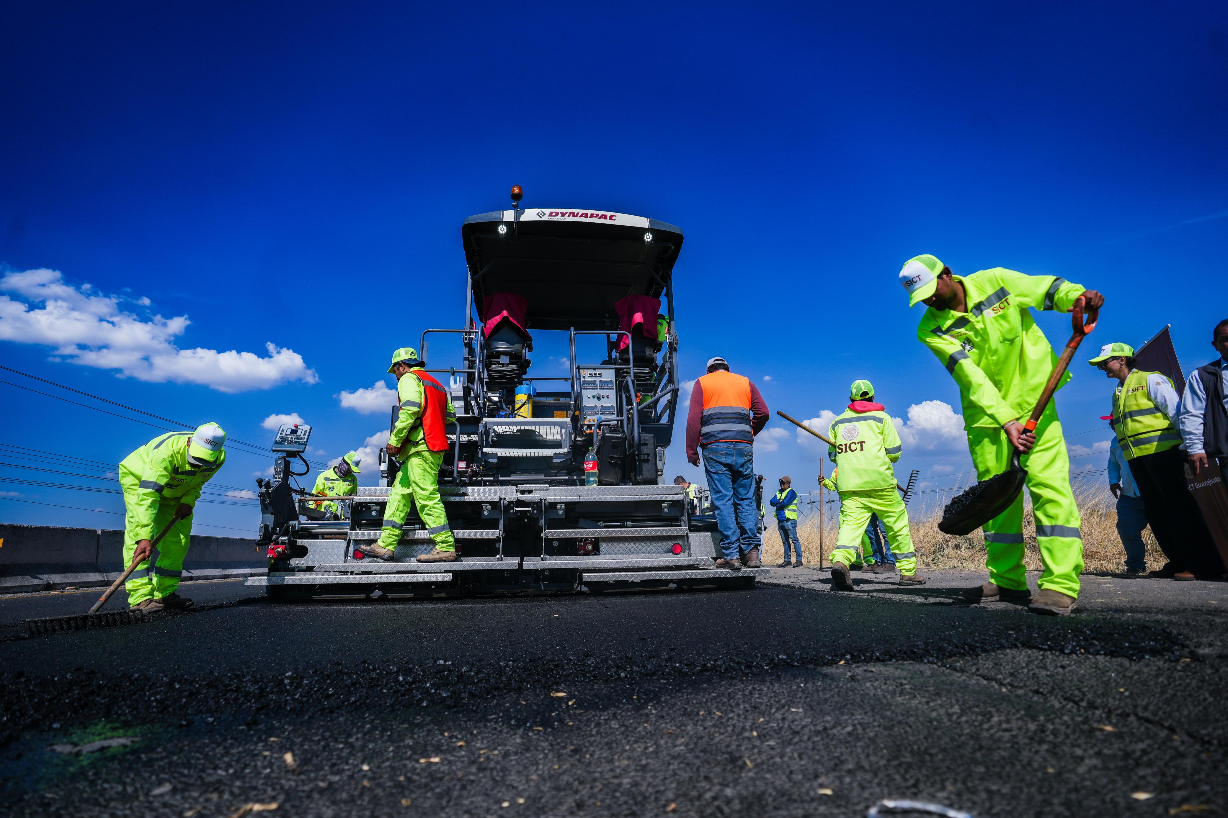 La directora del centro Guanajuato de la SICT, Irma Leticia González, precisó que por parte del Gobierno Federal llegó un tren con cinco máquinas para realizar los trabajos de mantenimiento carretero, entre ellos una perfiladora, una pavimentadora, un compactador liso, un compactador neumático y una petrolizadora.