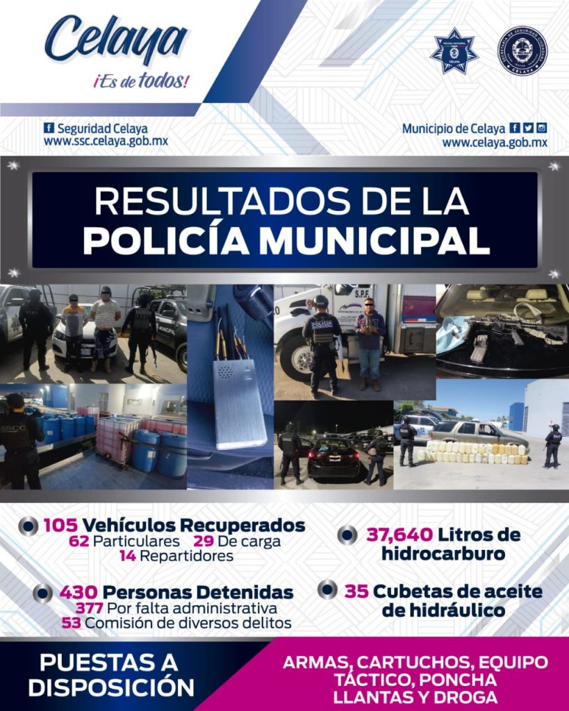 La Secretaría de Seguridad Ciudadana (SSC) sigue combatiendo de manera eficaz la delincuencia que afecta a la sociedad celayense.
