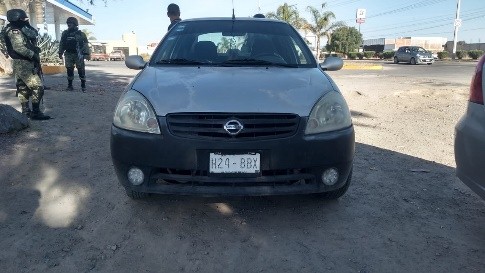 El segundo hecho ocurrió en la calle Juan M. Banderas de la colonia Emiliano Zapata, en donde se localizó un automóvil Nissan March, color gris, el cual al ser verificado en sus números de serie, arrojó reporte de robo vigente.
