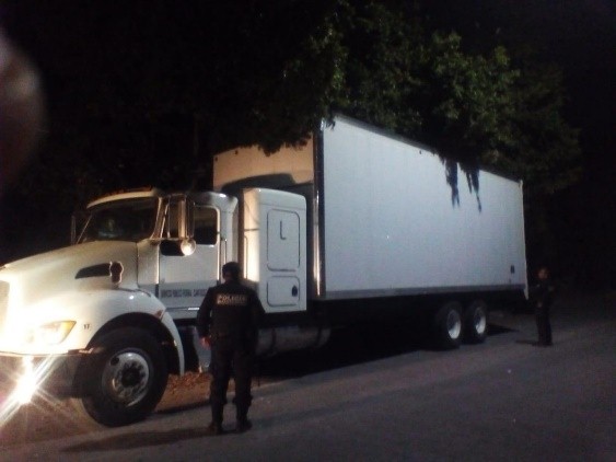 El segundo hecho ocurrió en un camino de terracería cerca de la comunidad de Jáuregui, donde en recorridos de vigilancia, se localizó un tractocamión Freightliner, color azul, con caja blanca, el cual fue reportado como robado horas antes.
