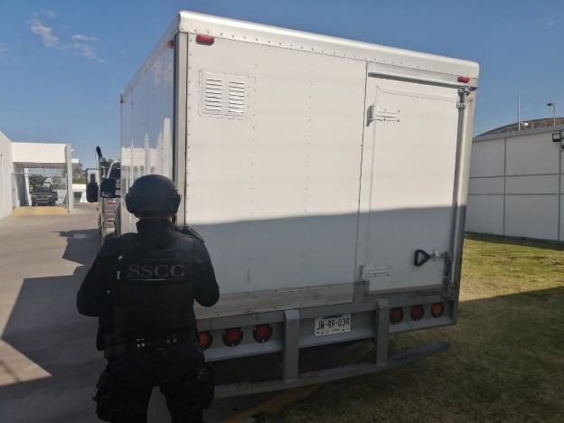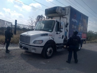 Así mismo en la avenida El Sauz a la altura de la colonia Los Naranjos, se recuperó un camión Freightliner, modelo 2020, propiedad de una empresa refresquera, el cual fue robado poco antes.