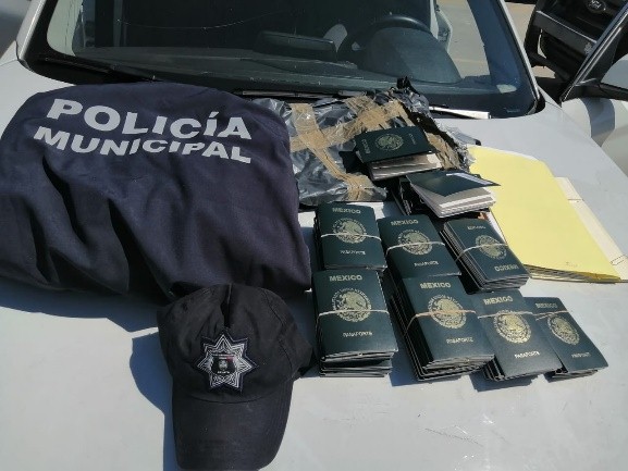 Al momento de ser detenido por la Policía Municipal, al inculpado se le encontró en posesión de 120 pasaportes de dudosa procedencia
