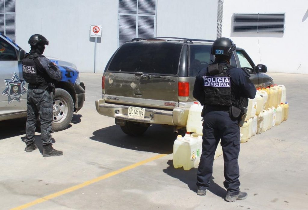 Al ser detectados los inculpados, estos dejaron el vehículo sobre la avenida principal del poblado, el cual iba cargado con más 600 litros de combustible presuntamente robado.