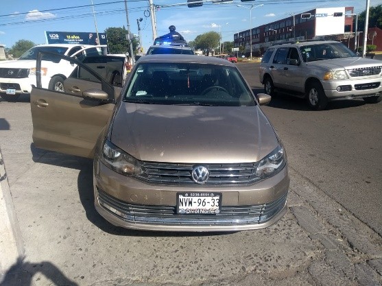 En ese momento se les marcó el alto y en la revisión de los números de serie, arrojó reporte de robo el automóvil Volkswagen Beetle, modelo 2016, color gris.