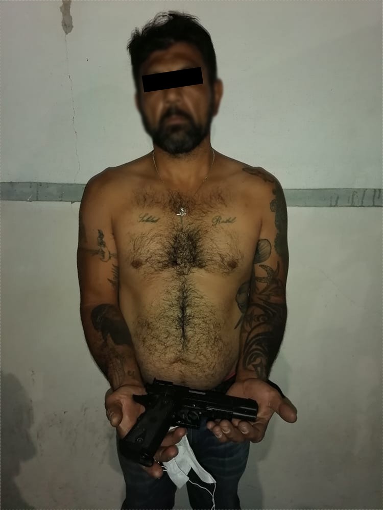 Así mismo quedó detenido el conductor de nombre José Antonio ‘N’ de 46 años, con domicilio en la colonia Las Insurgentes, quien llevaba fajada en la cintura una réplica de un arma de fuego.