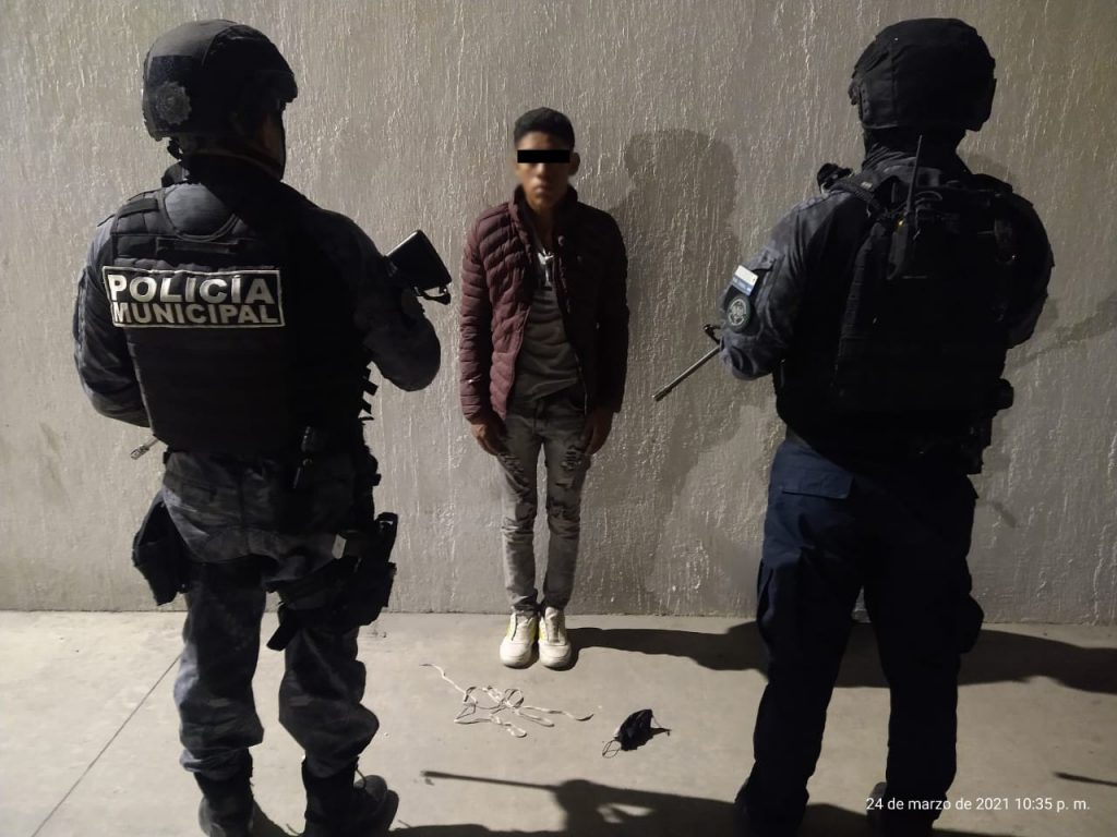 Fueron minutos más tarde, que se logró captar a los inculpados con las cámaras de vigilancia en la colonia Jacarandas, motivo por el cual se dio aviso a las unidades cercanas de Seguridad Pública y se logró la detención de los inculpados en la calle Escuadrón 201 y Cerro Prieto.