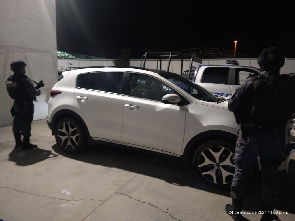 Y finalmente mediante reporte al 911, por el robo de un automóvil marca Mazda 3, modelo 2021, color blanco, se realizó un operativo sobre la carretera alterna a Villagrán.