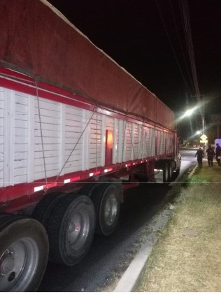 Tras recorrido por la Policía Municipal, se localizó a la altura de la comunidad La Trinidad, un tractocamión marca Volvo, modelo 2008, color verde, con plataforma cargada con 34 toneladas de varilla.