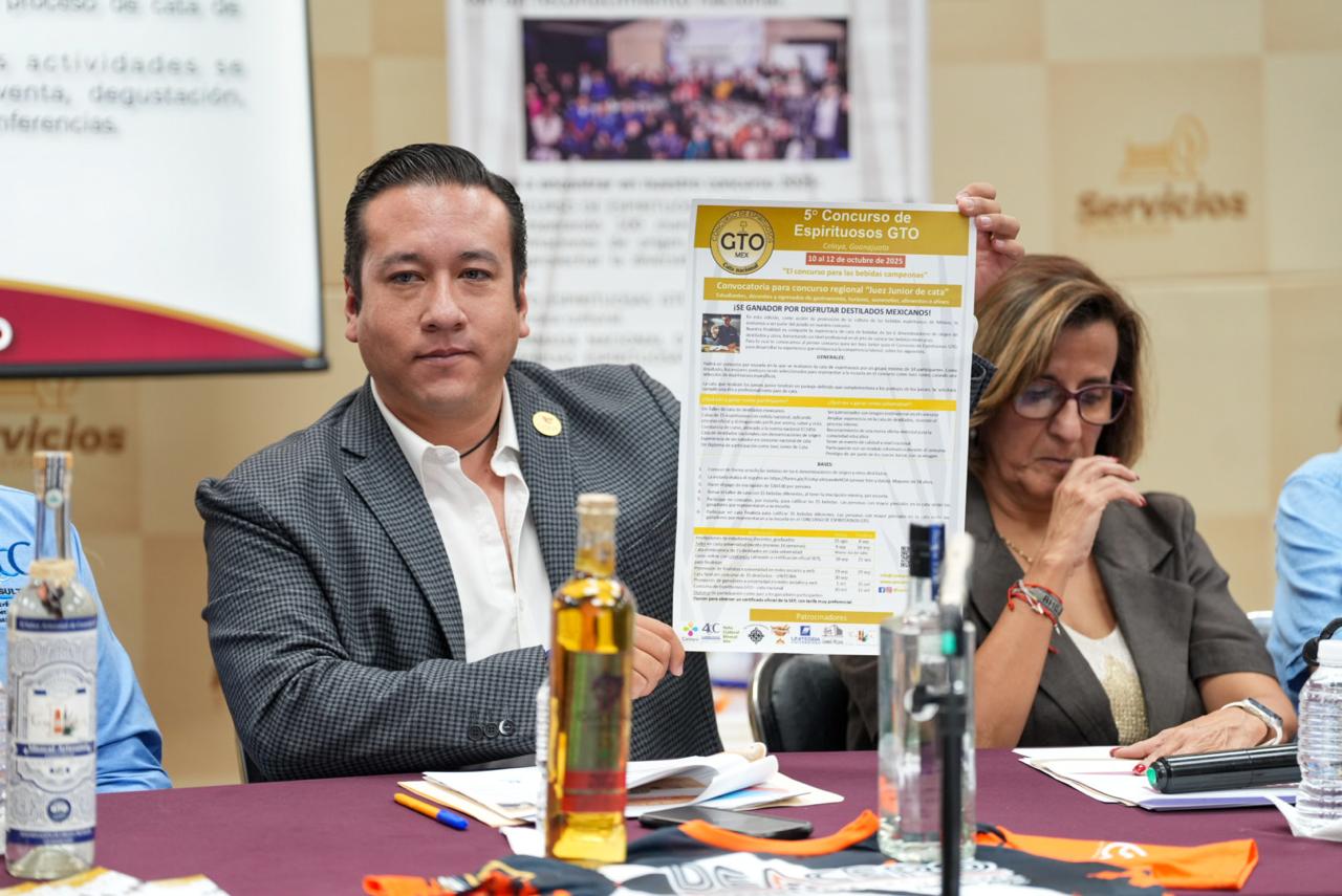 Antonio Castellanos, maestro mezcalero, participó en la rueda de prensa para hacer la invitación al público a que participe en el próxima Concurso de Espirituosos, de 10 al 12 de octubre en Mi Espacio Guanajuato, donde se darán cita alrededor de 300 expositores de diferentes destilados como mezcal, tequila, sotol y charanda.